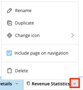 | AI Chat | Opens AI Chat. From here, you can start or continue a conversation with AI Chat and learn more about the data and cards powering your app. You can hide or change the order of the AI Chat feature by opening the app editor and going to |
