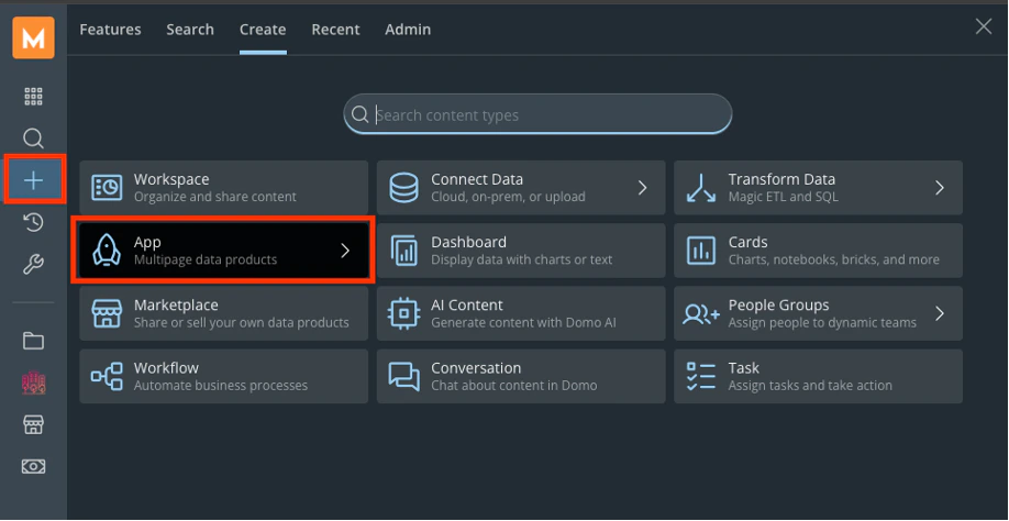 ![]() | All Domo apps | Takes you to the Apps Home. |