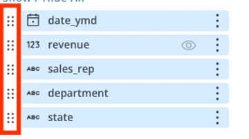 - Drag and drop columns by hovering over the icon and moving columns up or down to arrange them in the desired order.