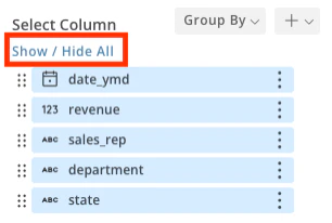 - Select Show/Hide All to show or hide all columns.