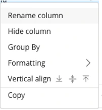 To edit and configure columns, select the more options menu and choose one of the following options: