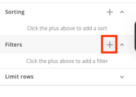 To filter a table:- In the Filters section, select the + icon.