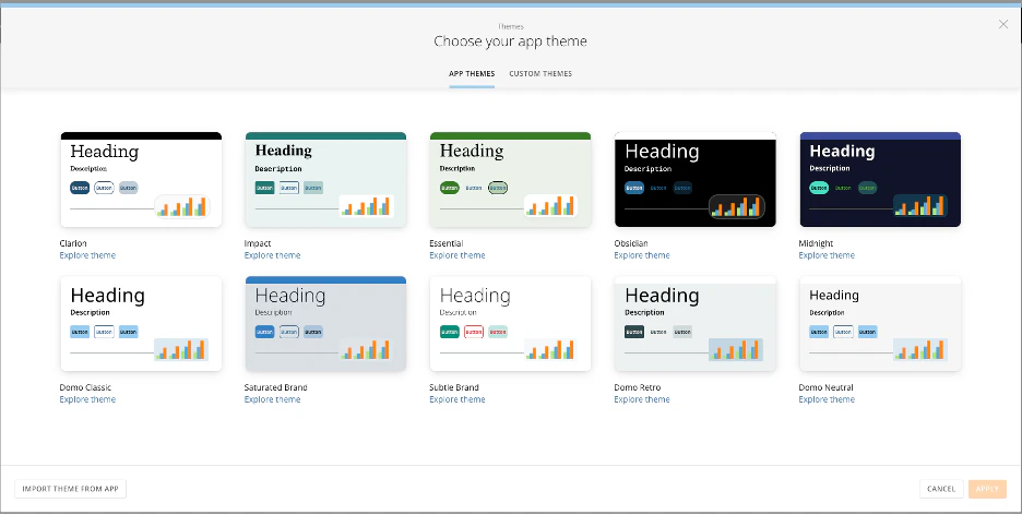 - Select an app theme or custom theme and select Apply to open the app editor. Learn more about themes and the app editor.