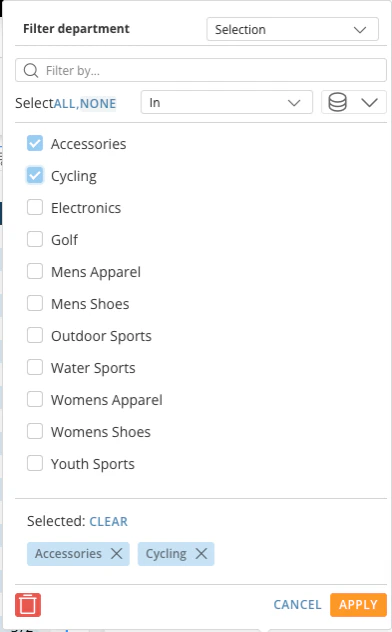 - Select the values you want to use as filters. Select Apply.
