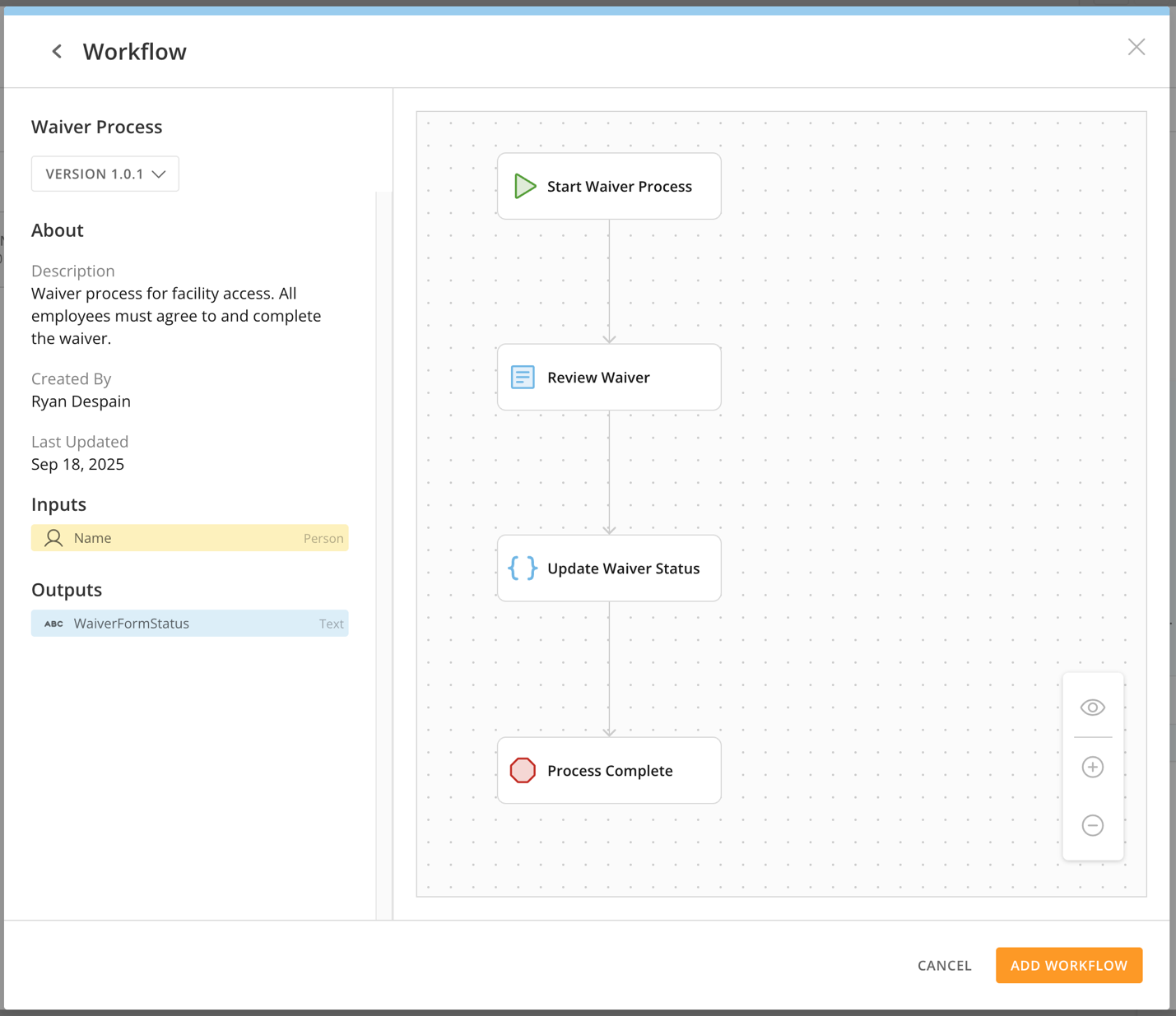 - Under Parameters, add descriptions for each input parameter to help the AI understand what data values it should map and use during execution