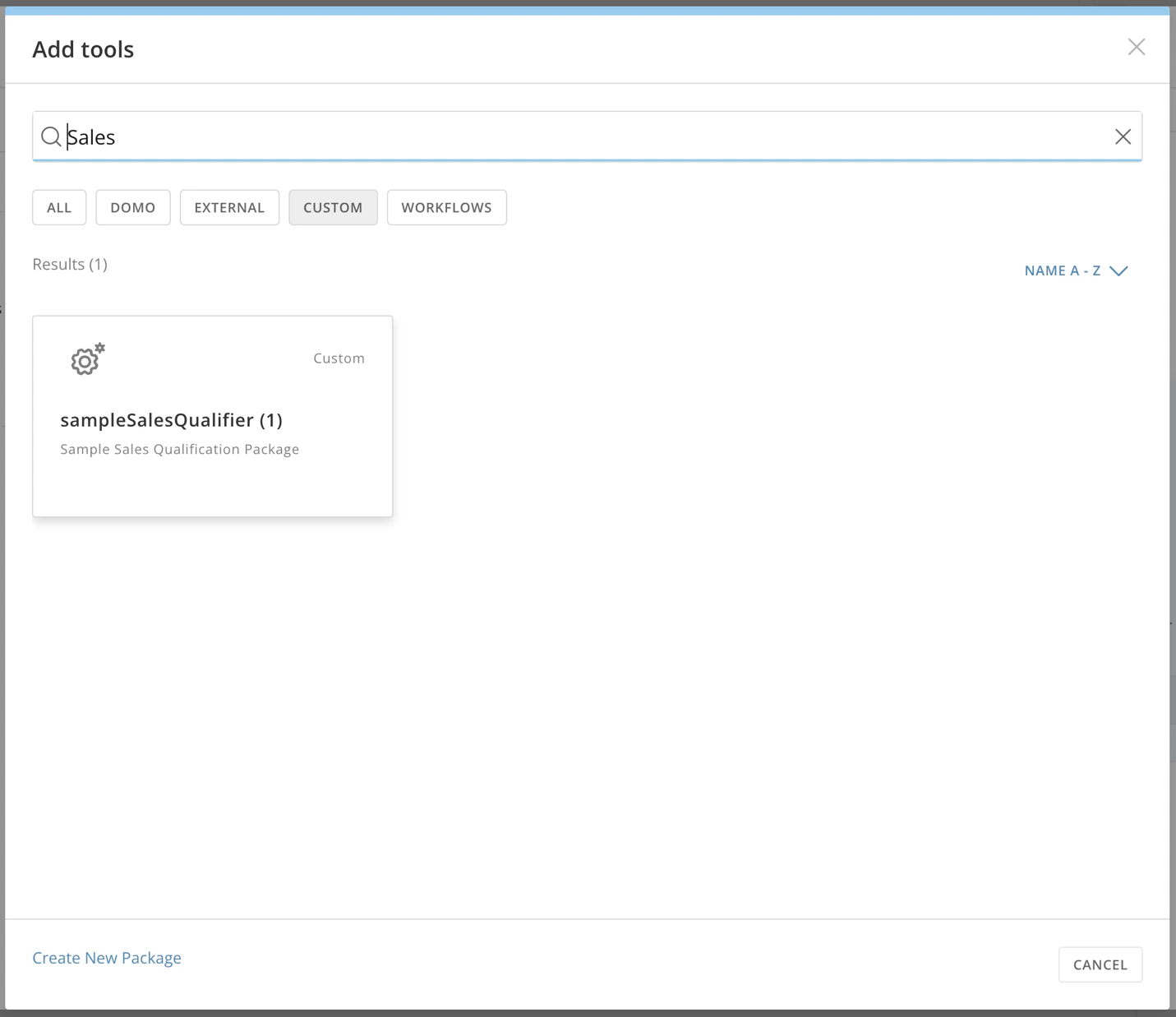 In our example, we choose a custom sales qualification package and the qualification function.