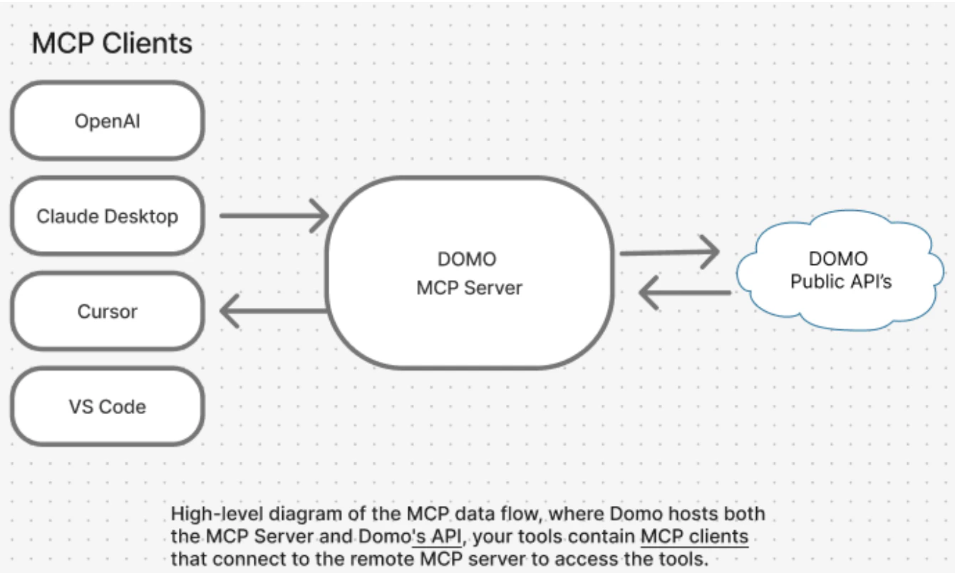 The Domo MCP Server works with any MCP-compatible AI client, including Claude Desktop, Claude Code, VS Code, Cursor, and ChatGPT.