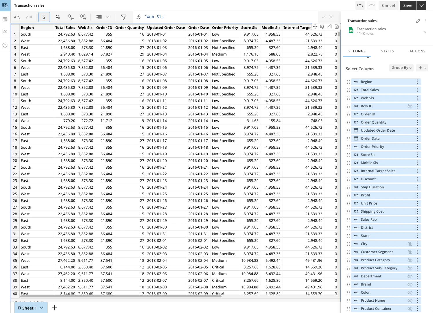 Worksheets allow you to transform raw data into quick insights without the learning curve overhead or the need to set up app structures. Worksheets include an accessible, drag-and-drop canvas for quick data analysis within Domo. It is closely integrated with Domo’s data environment and supports seamless escalation when you’re ready to move your worksheet to App Studio for sharing.