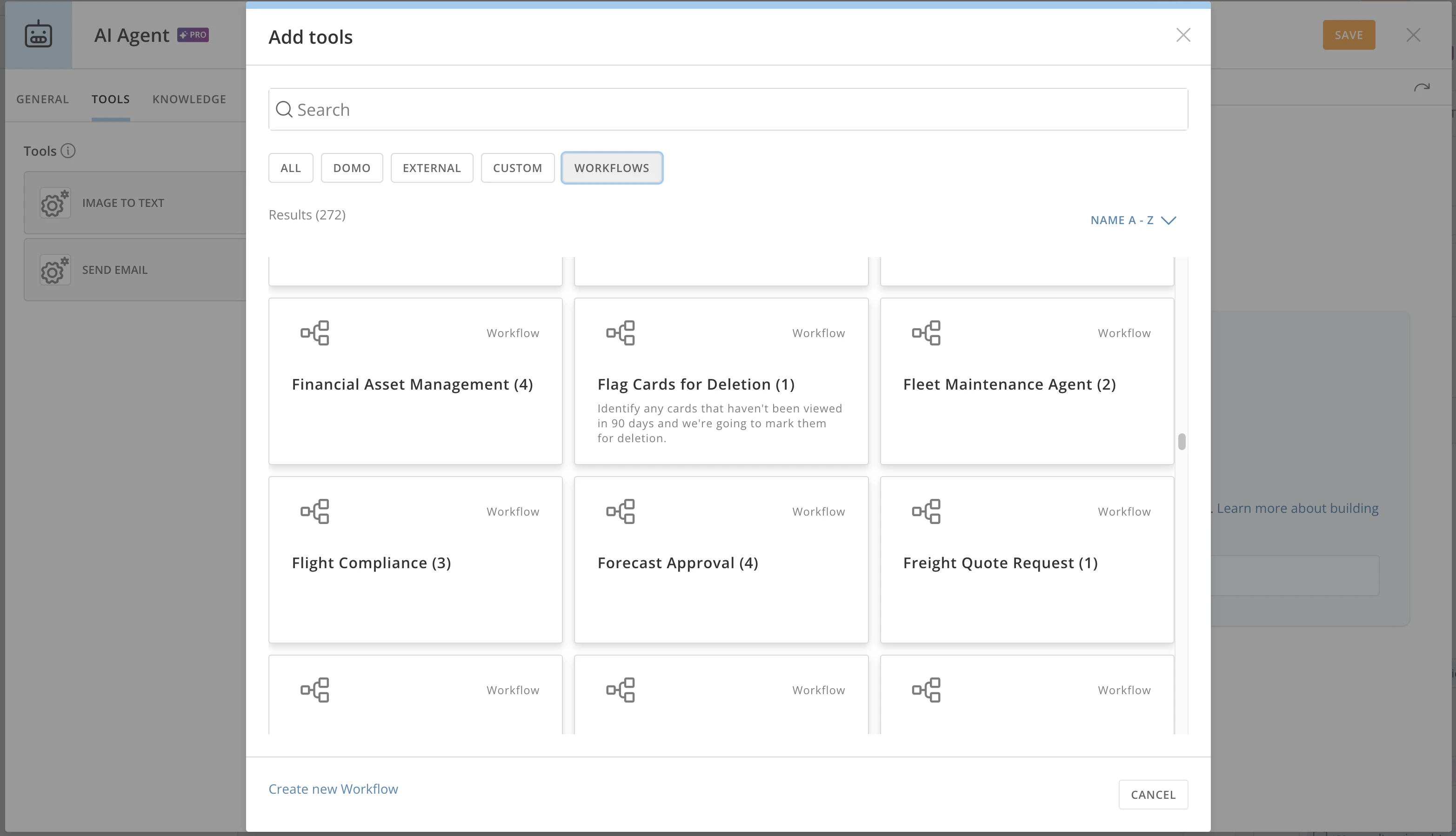 AI Agent Tasks can now use workflows as tools, allowing agents to leverage existing workflows alongside Code Engine functions or Jupyter scripts. Using workflows as tools allows the Agent task to gain access to a richer set of tools and extended functionalities, enabling the AI to process requests within a single workflow step. Benefits include:- Increased flexibility