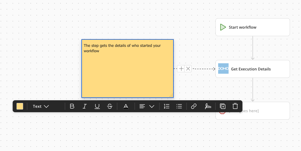 The new annotations feature in Workflows lets you add comments directly to the workflow canvas. Annotations support rich text formatting and can be connected to one or multiple workflow steps. Key benefits of annotations include:- Improved clarity