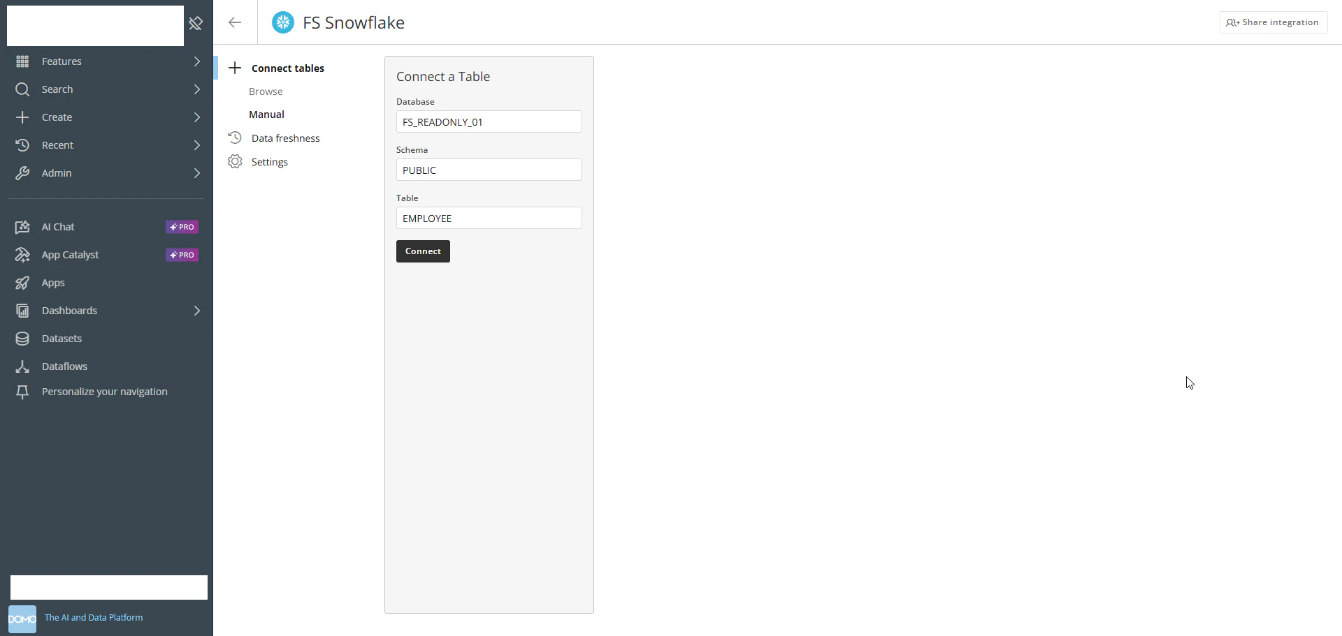 The Cloud Integration tables UI has been updated to include manual entry for database, schema, and table names, as well as the ability to connect tables in bulk. This update allows for improved communication of errors and statuses and table management for users with a large number of tables.