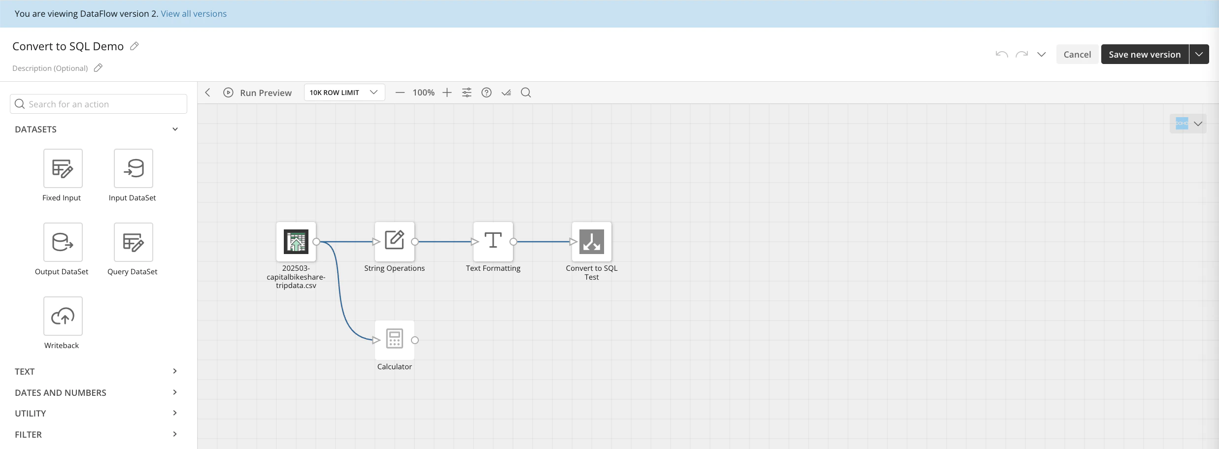 We have unlocked the ability to view an older version of a DataFlow without having to make the older version the current version. This feature allows you to open the older version and see all of the logic and configurations in it. You can also save the old version as a new version (making it the current version) or save it as a new DataFlow (creating a net new DataFlow outside of the current DataFlow’s context).