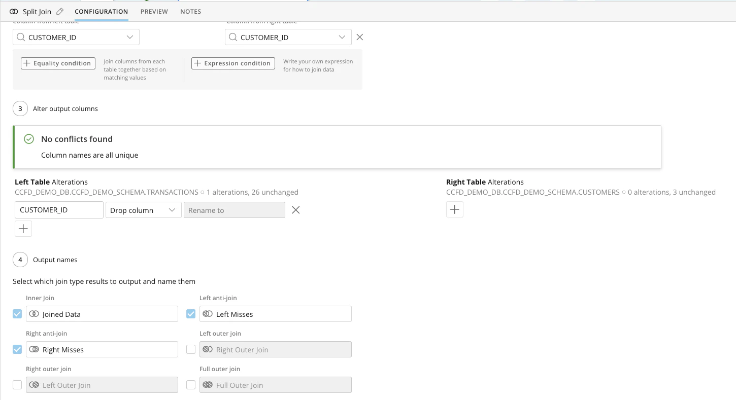 The new Split Join and Split Filter tiles provide more visibility into your data, easier troubleshooting, and pipeline development. Split Join — Manage multiple output streams from a single Join and easily identify rows that joined and those that did not. Split Filter — Capture rows that meet your filter criteria while viewing those that do not in a separate stream. Learn how to use the split join and split filter tiles in Magic ETL.